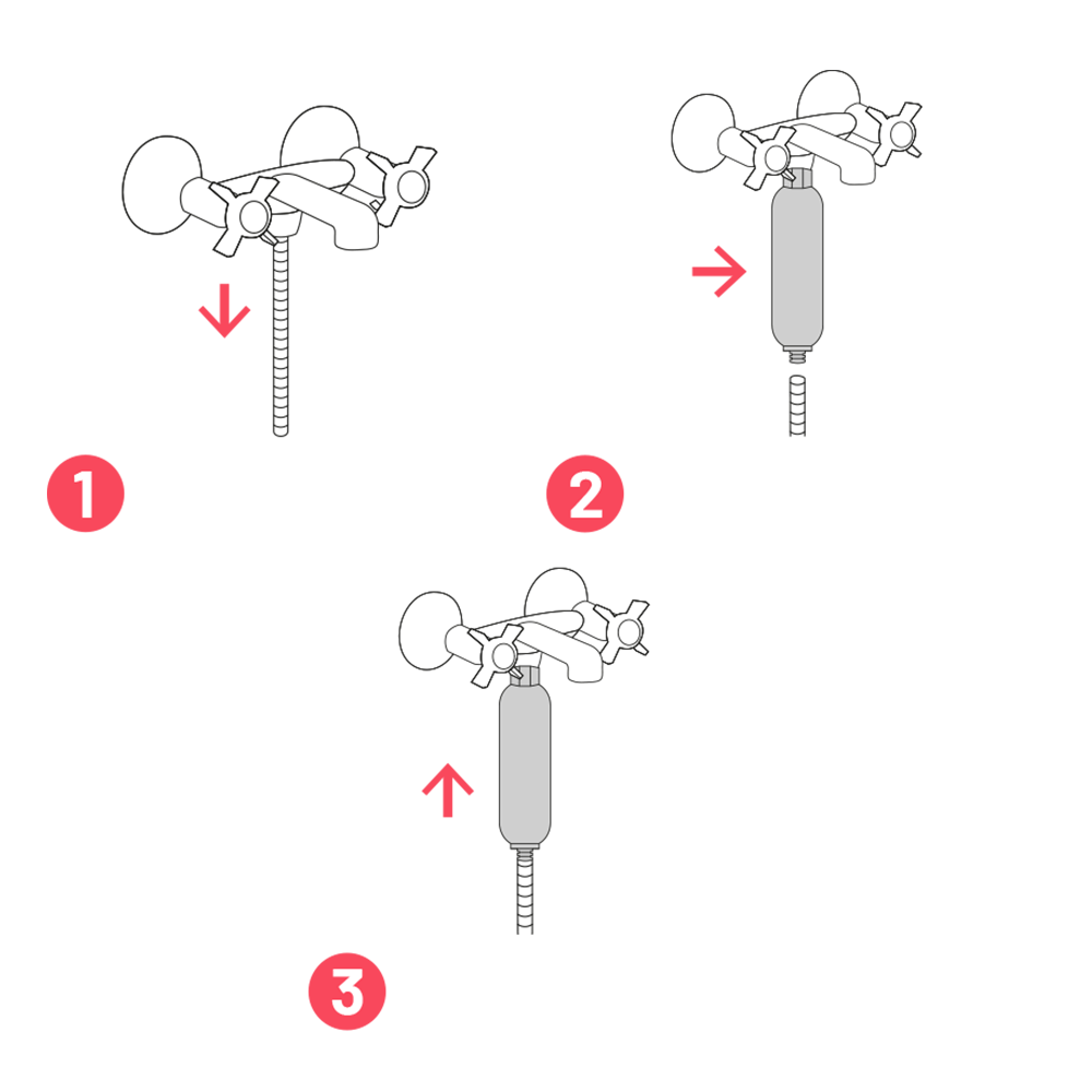 Funciona con agua caliente al tener como principal componente el sulfito de calcio. Se instala en el monomando de la ducha, es desechable y su duración es de 6-8 meses (dependiendo del uso y calidad del agua).